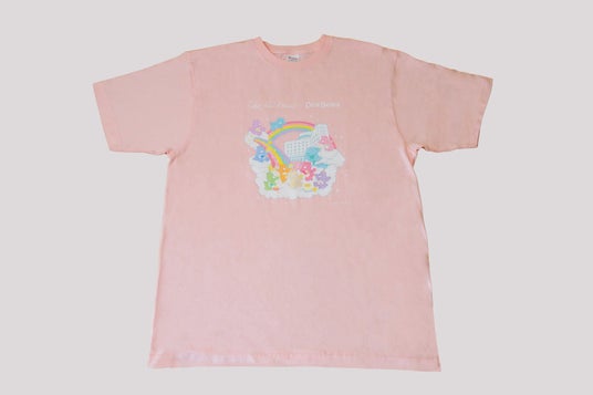 今回のコラボレーションプランのために描かれたオリジナルアートがプリントされたTシャツは、ケアベアルームにマッチする淡いピンク色。ご宿泊後の普段使いにも使いやすい、ゆったりサイズのXLでご用意しています。
