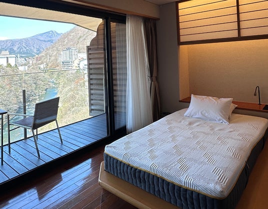 昨年5月より511号室(スイート洋室タイプ)に導入された「エマ・マットレス プレミアム」は、ご宿泊のお客様から高い評価をいただいておりました。これを受け、進化版モデルである「エマ・プレミアム V2 プラス」への入れ替えが決定し、同時に、鬼怒川渓谷を正面に望む505号室(スイート和洋室タイプ)には、エマ・スリープのマットレスシリーズの中でも最上級モデルである「エマ・ラグジュアリー」が新たに導入されました。