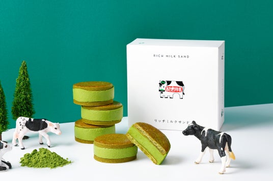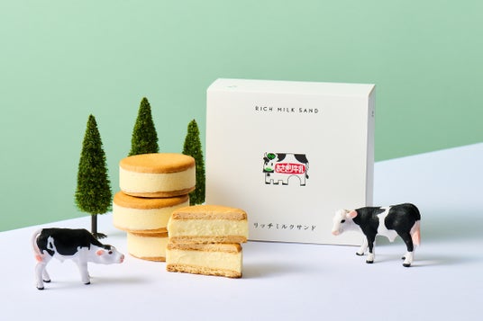 『リッチミルクサンド』は、朝霧高原の新鮮な生乳を使用した特製ミルククリームを、さっくり軽い食感のバターサブレでサンドした人気商品。累計販売数12万個を突破し、ミルク本来の豊かなコクとやさしい甘みが世代を問わず愛されています。