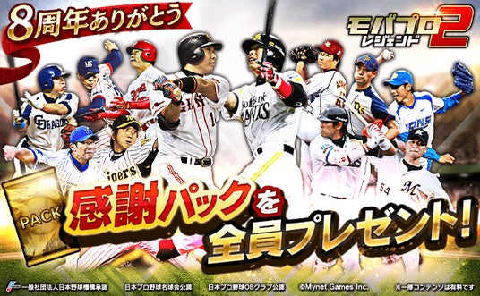 プロ野球カードゲーム「モバプロ2 レジェンド」が8周年!皆さまのご愛顧に感謝し「8周年・伝説誕生キャンペーン」を開催