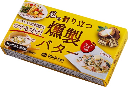 珍しいバターの燻製です。通常の燻製方法ではバターが溶けてしまいますが、特殊な燻製方法を行うことでバターを溶かさずに燻製にしています。