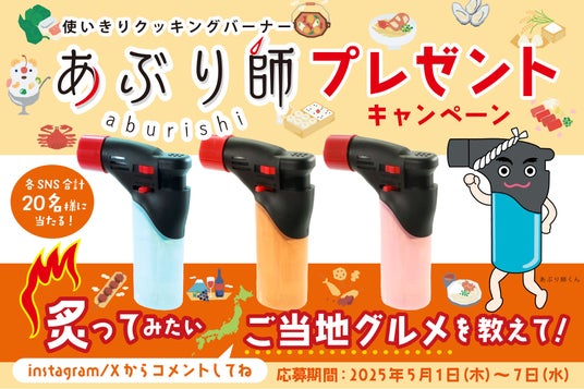 炙ってみたいご当地グルメを募集!使いきりバーナーライター「あぶり師」プレゼントキャンペーン開催