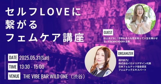 株式会社イロドリデザイン(本社:東京都渋谷区、代表取締役:田代彩乃)は、2025年5月31日(土)13:30~15:00、渋谷「バイブバー・ワイルドワン」にて、『セルフLOVEに繋がるフェムケア講座』を開催いたします。