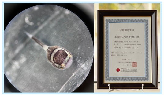 令和2年から上越市内での採集を開始し、令和5年3月11日に当館で初めて「サクラダンゴウオ」の繁殖が成功したことを受け、初繁殖認定の申請をして認定されました。
