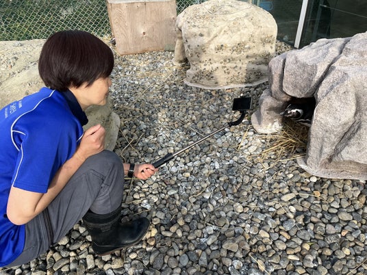ペンギンの巣穴にカメラを設置して、リアルタイムの様子をモニター越しにご覧いただけます。ペアが寄り添ったり、親ペンギンがお腹の下で卵を温めている様子や卵からかえったヒナの世話をしている様子をご覧いただけます。
