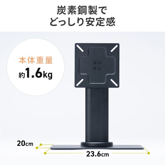 本製品は、小型のモニターや、VESA取付けタブレットホルダー向けの卓上モニタースタンドです。