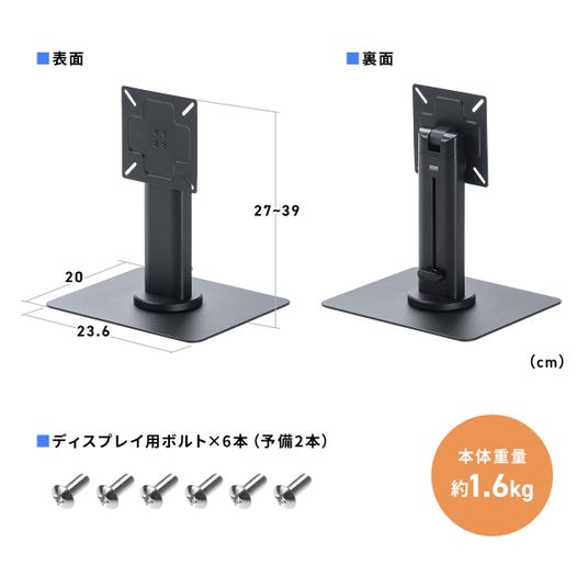 本製品のサイズはW23.6×D20×H27~39cm、 重量は1.6kgです。