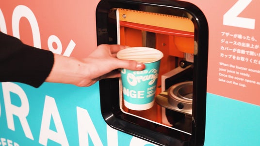 オレンジジュースができるまでの工程をガラス越しに覗きながら楽しめる、エンターテインメント性を兼ね備えた新世代の自動販売機です。使用するオレンジは季節によって産地・品種が変わるため、一年を通して様々な味わいのオレンジジュースをお愉しみいただけます。