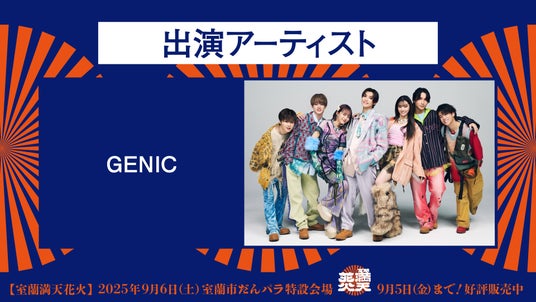 一般社団法人MANTEN PROJECT(室蘭満天花火2025実行委員会)は、2025年9月6日(土)に行われる、室蘭満天花火2025の「満天音楽LIVE」の出演アーティストとして、GENICが決定したことを発表いたします。
