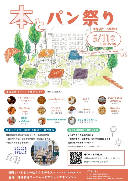 【イベント開催@足立区東綾瀬】「本とパン祭り」5月11日(日)10時~15時。リノベーション団地「いろどりの杜」にて開催!10店舗出店
