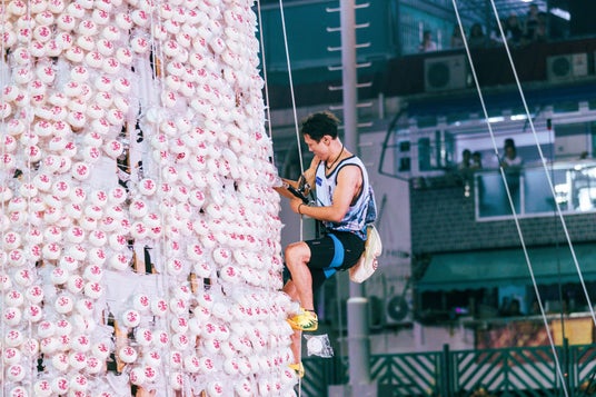 真夜中に行われる饅頭塔競争では、12人のクライマーが幸運の饅頭で覆われた高さ14メートルの塔を駆け上がり、饅頭を取り合います。 取った饅頭が多ければ多いほど得点が加算され、得点が一番多い人が優勝となります。優勝者には、「代代平安獎」(平和賞)が授与されます。