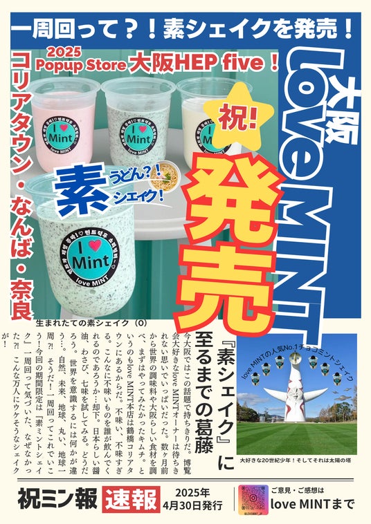 love MINTが新たな挑戦をいたします。大阪の名物を取り入れた「素ミントシェイク」が登場。一周回る発想から生まれた、爽やかな味わいの素ミントシェイクをご紹介いたします。
