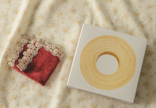 バウムクーヘンと近沢レース店のタオルハンカチがセットになった、限定ギフト。