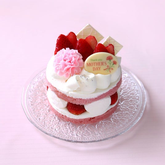 たっぷりのクリームとイチゴにカーネーションを飾った母の日にぴったりの限定ケーキ。