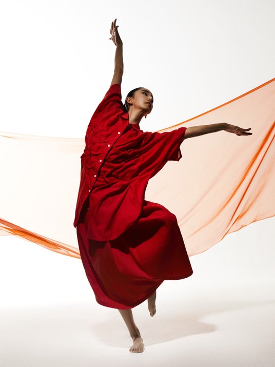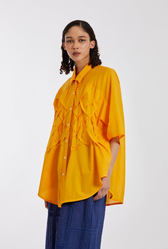 天然素材を常に使用することで柔らかな肌触り、着心地が良く、ピンタックの凹凸感に優しく陰影をつけるさまがまるで彫刻のように優美な印象。