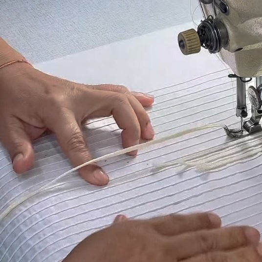 熟練した職人が1本1本縫い上げるYACCOMARICARDのピンタックは、ピンのように細く、他に類を見ないほど完成度の高いテクニック。