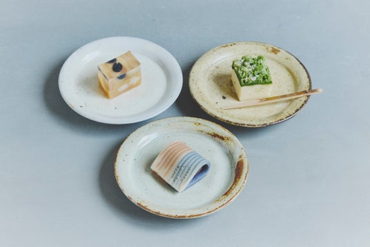 1階のcafe & bar 「菓寮 浮雲」では、菓子や肴とともに「曲水の宴」の趣をお楽しみいただけます。朝餉には、京都を拠点に活動する「円卓」の庄本彩美氏監修のもと、丹後の郷土食である「ばら寿司」からインスパイアされた御膳をご用意。カフェの時間には、葉山を拠点に活動する「嶋ゞ」の小島直子氏が監修した、天橋立の自然を描写した和菓子と茶のペアリングをお楽しみいただけます。京都の老舗和菓子店「有職菓子御調進所 老松」がつくる上生菓子とともに、宮津の日本茶専門店「磯野開化堂」の日本茶をご用意いたします。また、夜の時間はバーとして、お酒や和菓子、肴などをご用意しています。
