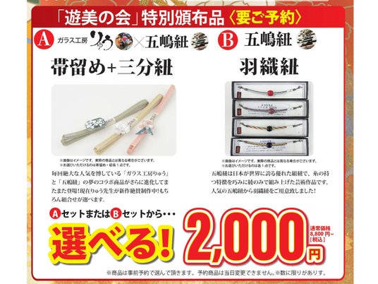 特別頒布品(要予約)A: ガラス工房×五嶋紐 帯締め+三分紐