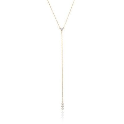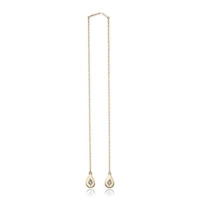 ペアシェイプのゴールドパーツがダイヤモンドを際立たせ、動くたびに揺れるチェーンが人の心を捉えて離さない。