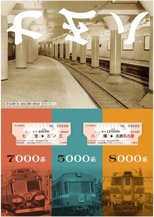 専用台紙のデザインには、かつて活躍していた7000系車両、5000系車両、キハ8000系車両の写真や、名鉄名古屋駅の過去と現在の写真を使用しています。発売数は令和7年5月8日にちなんで、限定758セットです。