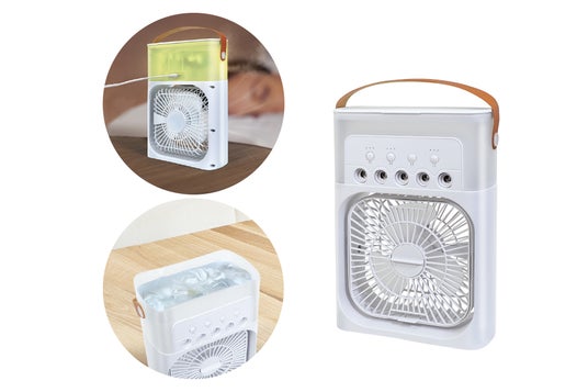 特徴:寝苦しい夜もこれで快適♪USB給電式のミストファンです。ミストと風の気化熱効果で空気を冷やしてくれます。上部の給水口に氷を入れるとさらに冷却効果がアップ!3段階のタイマー機能と上下の風向き調節もできる多機能っぷり。ほんのり照らすLEDライト機能は全部で7色。シーンに合わせてお好みのカラーで癒しの空間を演出することができますよ。