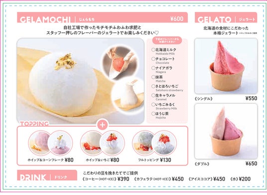もっちっちが600円→500円、ジェラートがシングル550円→450円となります。