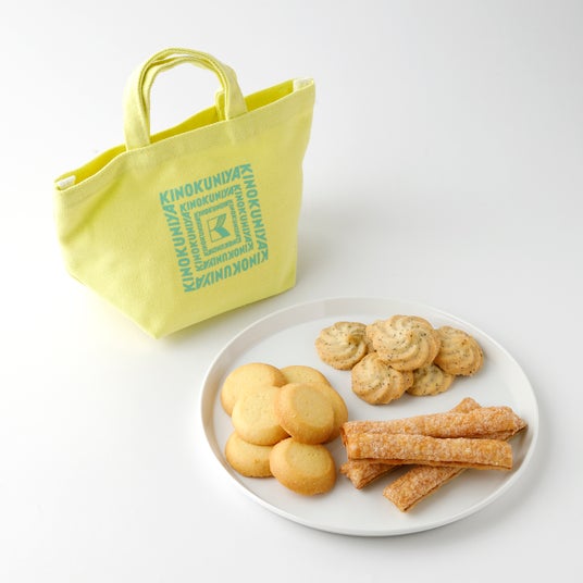 鮮やかなレモン色のコットンバッグに、瀬戸内レモンパイスティック、塩レモンクッキー、スペシャル紅茶クッキーを詰め合わせました。手のひらに収まるコンパクトなサイズで、小物入れにぴったり!