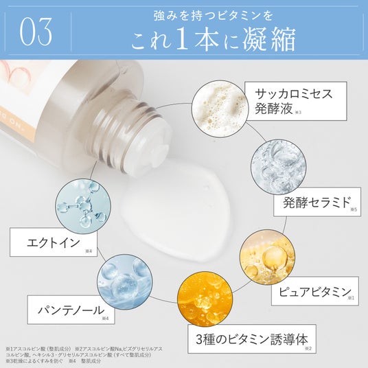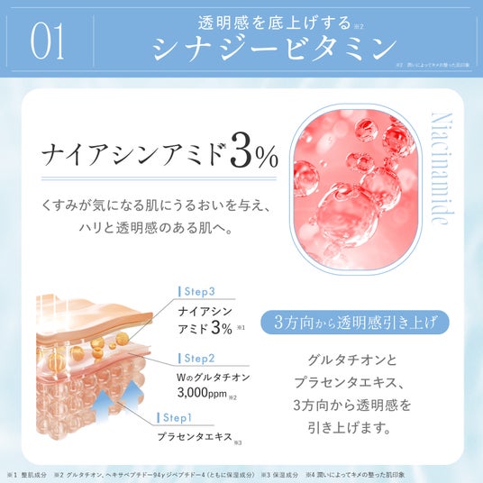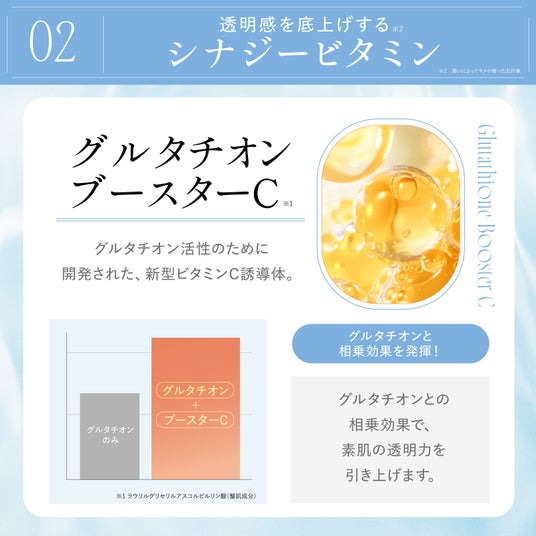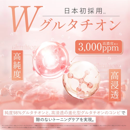 1.高純度・高浸透*1のWグルタチオン*2で、隙のないトーニングケア