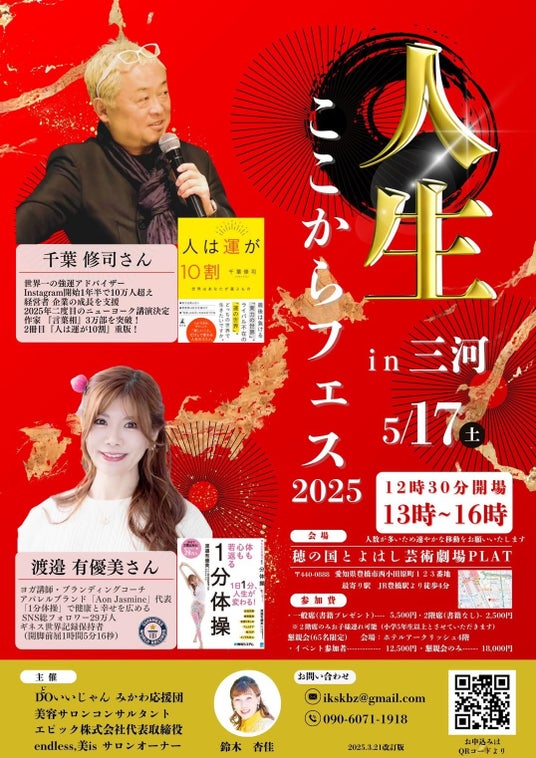 40代以上からの明るい未来をテーマにした地域密着型イベント「人生ここからフェス 2025 in 三河」が、5月17日(土)に豊橋市のPLATにて開催されます。