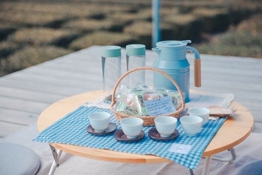 準備は完了。あとは茶畑に囲まれたテラスで、お茶を味わい、寝転び、景色を眺め、風を感じる。時間が緩やかに流れる特別な体験をお楽しみください。