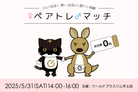 株式会社ワールドプラスが運営するフィットネスジム「ワールドプラスジム宇土店」(熊本県宇土市)にて、2025年5月31日(土)に筋トレを通じた新しい出会いとコミュニティづくりを目的とした特別イベント【ペアトレマッチ!】を開催いたします。