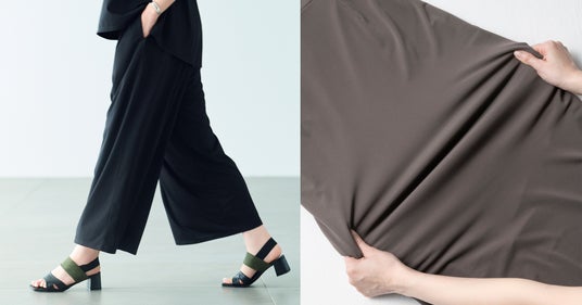 ▲ツヤ・落ち感のある上品な素材ながら、抜群のストレッチ性でノンストレスです
