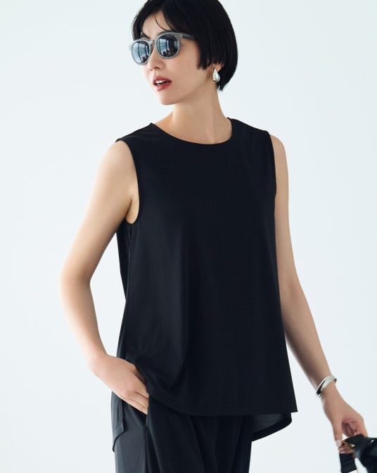 ブラウス感覚で着られる上品なデザインが魅力のノースリーブトップスです。