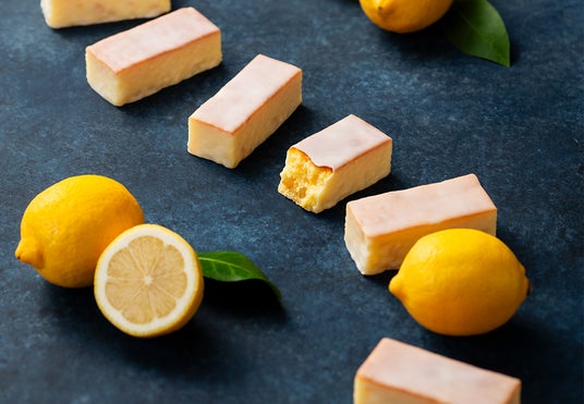 瀬戸内産レモンピールの蜜漬けを混ぜ込んで、バターの香り豊かに焼き上げたレモンケーキはふわっと柔らか。すっきりとしたレモンの酸味と程よい甘味のバランスを追求した口当たりの良いケーキ生地と、レモンピールの微かな苦みと芳香が一体となり、もぎたてレモンのような贅沢に香り立つ味わいに。仕上げにレモンオイルを使った酸味のあるグラサージュを纏わせ、香りと食感のアクセントをプラスしました。