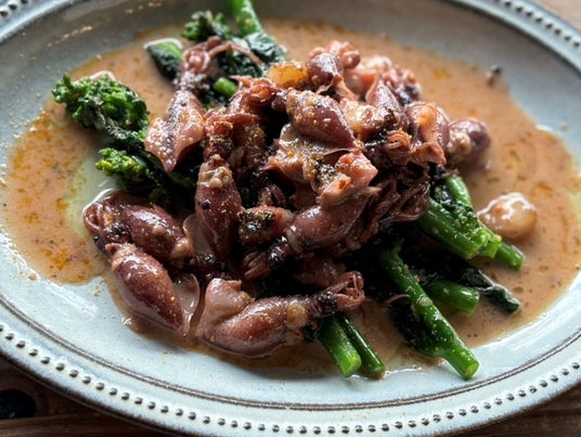 のらぼう菜とホタルイカ パンチェッタのソース春の訪れを告げるのらぼう菜と、ぷりぷりのホタルイカを組み合わせた春を感じる一皿。くせのない甘みとほのかな苦みが特徴ののらぼう菜は、炒め物やオイル通しとの相性抜群。パンチェッタの塩気と脂のまろやかさが溶け込んだクリームソースが、全体を包み込む、やさしく、ホッとする美味しさを届けます。