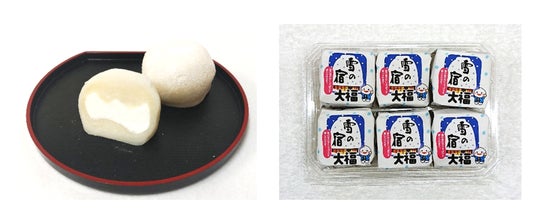 左:雪の宿大福イメージ 右:6個入り販売形態