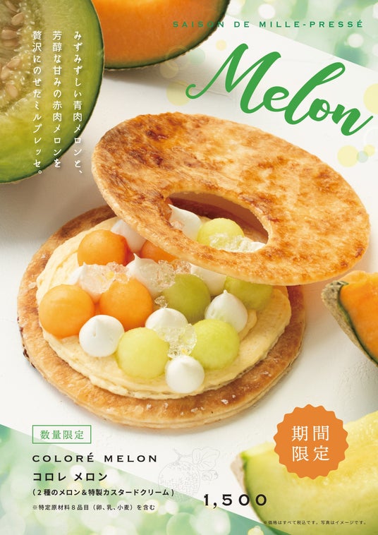 旬を迎えるメロンを使用し「2種のメロン&特製カスタードクリーム」を組み合わせたミルプレッセです。