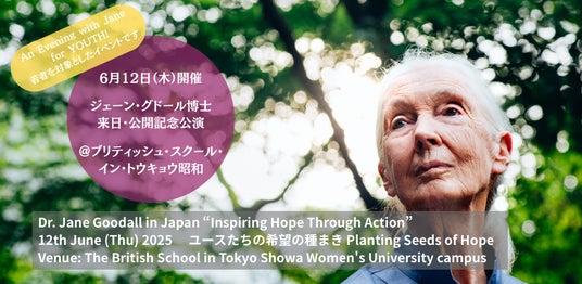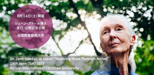 この来日に合わせて、ジェーン・グドール インスティテュート ジャパンでは、6月12日~14日の3日間、来日特別イベント「Hope in Action──希望は、行動の中に。ジェーンから受け継いで」を開催します。