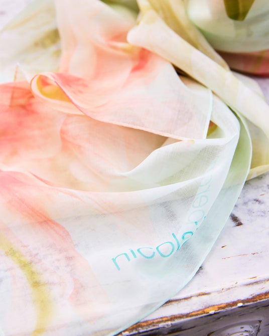 大輪のオリエンタルリリーを大胆にデザインした気品溢れるストール。
