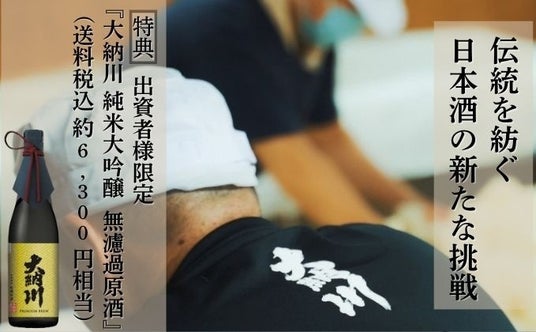 特典:出資者の皆さまのためだけに仕込む、出資者様限定の日本酒『大納川 純米大吟醸 無濾過原酒』をお届けします。