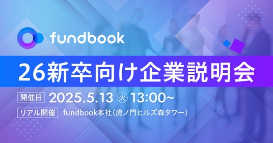 タイトル :fundbook 26新卒向け企業説明会開催日時 :2025年5月13日(火)13:00~14:30