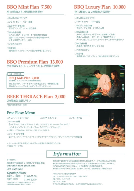 「The Mint Ginza」営業時間 ※季節や雨天により変更となる可能性がございます。