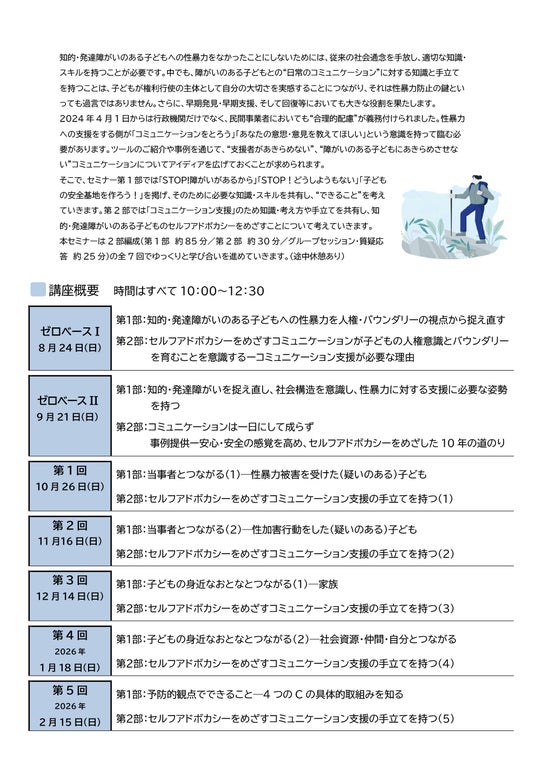 オンライン連続セミナー「知的・発達障がいのある子どもへの性暴力防止2025」を今年度も開催します!