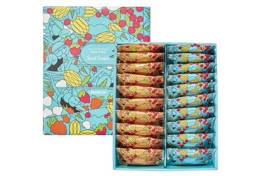 株式会社シュクレイ(代表取締役社長:阪本良一 本社:東京都港区)は、“くだもの”と“木の実”を楽しむ洋菓子ブランド「フランセ」から、「果実をたのしむサンドクッキー」を発売いたしました。「果実をたのしむサンドクッキー」と「木の実をたのしむサンドクッキー」の2味が入ったアソートは、毎年大人気の商品です。