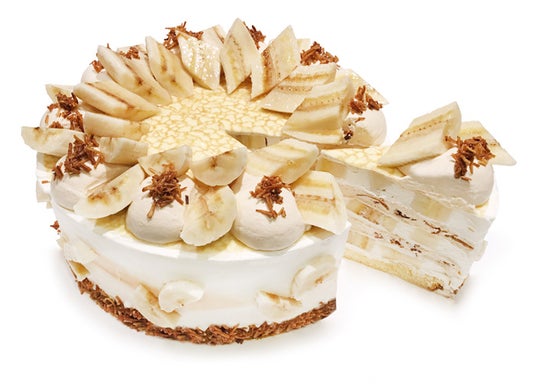 しっとりと甘いバナナとキャラメルクリーム、クレープ生地をあわせて飾り付けました。中にもふんだんにバナナをサンドし、アクセントにキャラメリゼしたココナッツを飾ったミルクレープです。