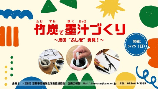 公益財団法人京都市環境保全活動推進協会(所在地:京都市伏見区深草池ノ内13、理事長:新川達郎)は、持続可能な社会の実現を目指し、未利用バイオマス有効活用推進事業を展開しています。その一環として、2025年5月25日(日)に、炭の有用性や活用方法について学ぶとともに、脱炭素に対する興味・関心を深めることを目的としたイベント「竹炭で墨汁づくり~炭の“ふしぎ”発見!~」を開催します。