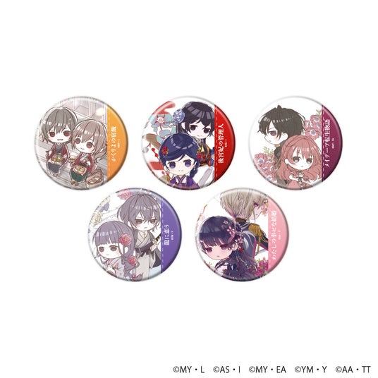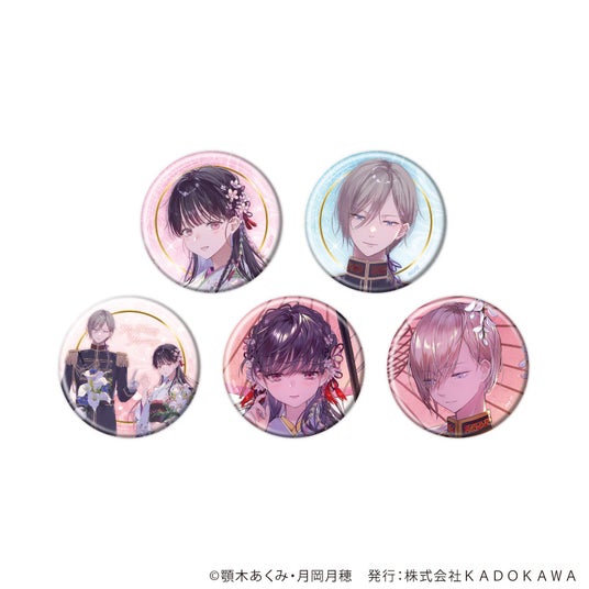公式イラストを使用した缶バッジ(およそ5.7cm)には、『浅草鬼嫁日記』『おいしいベランダ。』『鬼狩り神社の守り姫』『青薔薇アンティークの小公女』『メイデーア転生物語』『龍に恋う』6作品のデザインが登場。キャラクターのお顔部分をクローズアップしているので、茨木真紀や天酒馨たちの表情をじっくりと眺めることができます!