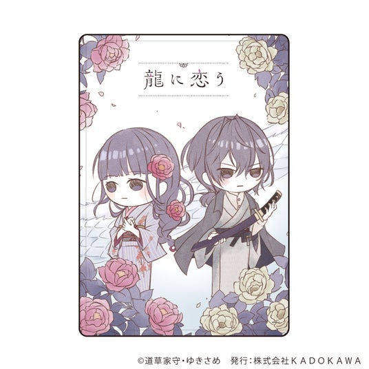 パーツ付きアクリルキーホルダーは、大きさおよそ6cm×5cm以内。椿や桜など各作品をイメージした花をあしらったミニパーツで、華やかさがより感じられるように!