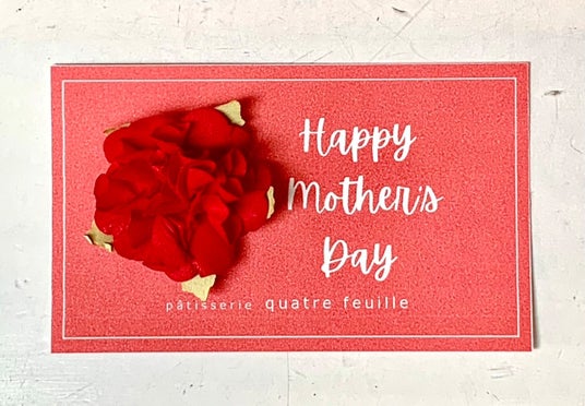 母の日の贈り物として、母の日特別仕様の可愛らしいカーネーション付きメッセージカードをご用意しております。「ありがとう」の言葉と一緒に、あなたの温かい想いをしっかりと届けます。