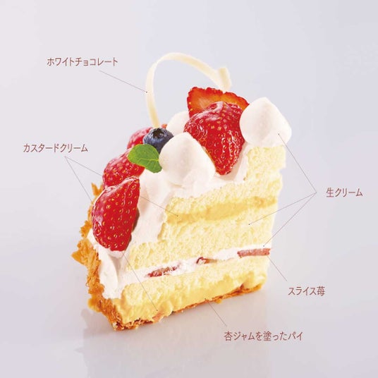 ふわふわのスポンジの間にスライスいちごとこだわりの生クリーム、なめらかなカスタードクリームをサンド。さらにもう一層スポンジを重ね、カスタードクリームをサンドしており、一口ごとに贅沢な味わいが広がります。